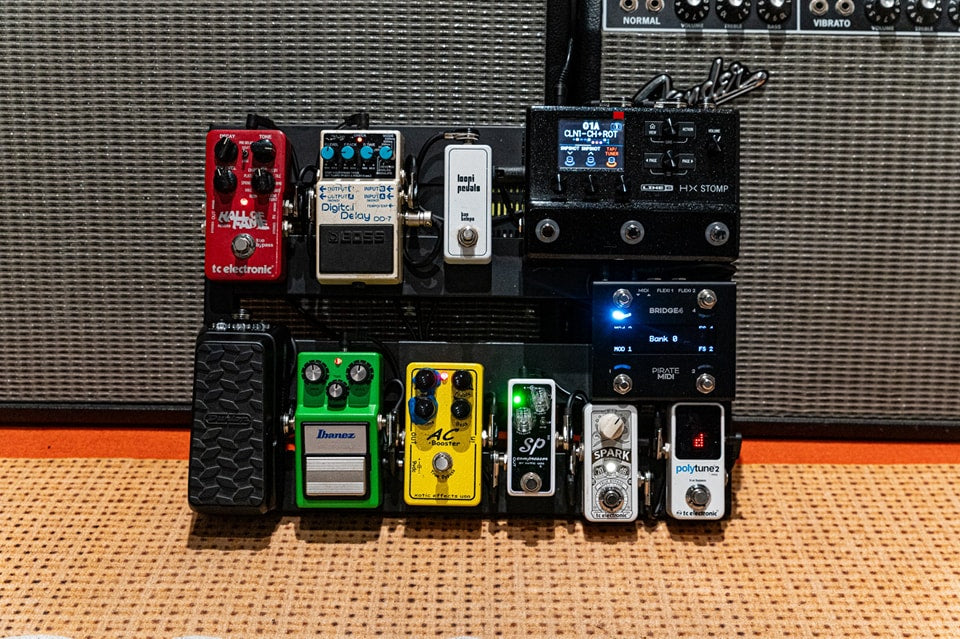 Use colours for instant recognition: you might use blue for reverbs, red for amps, green for drive, or match the colours of your gear for a great aesthetic!