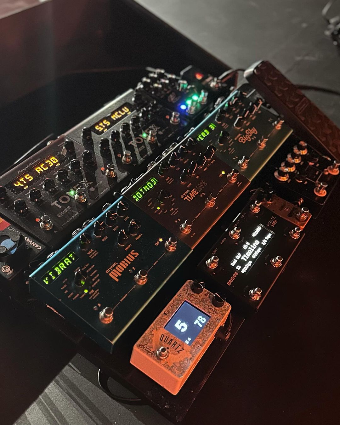 Use colours for instant recognition: you might use blue for reverbs, red for amps, green for drive, or match the colours of your gear for a great aesthetic!